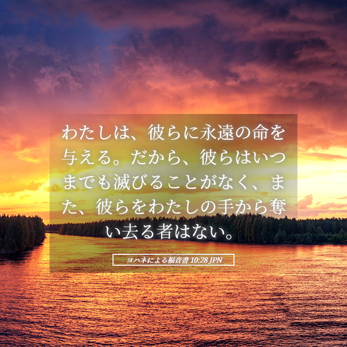 ヨハネの福音書 10:28 – 「わたしは彼らに永遠のいのちを与えます。彼らは決して滅びることがなく、まただれも、わたしの手から彼らを奪い去ることはできません。」