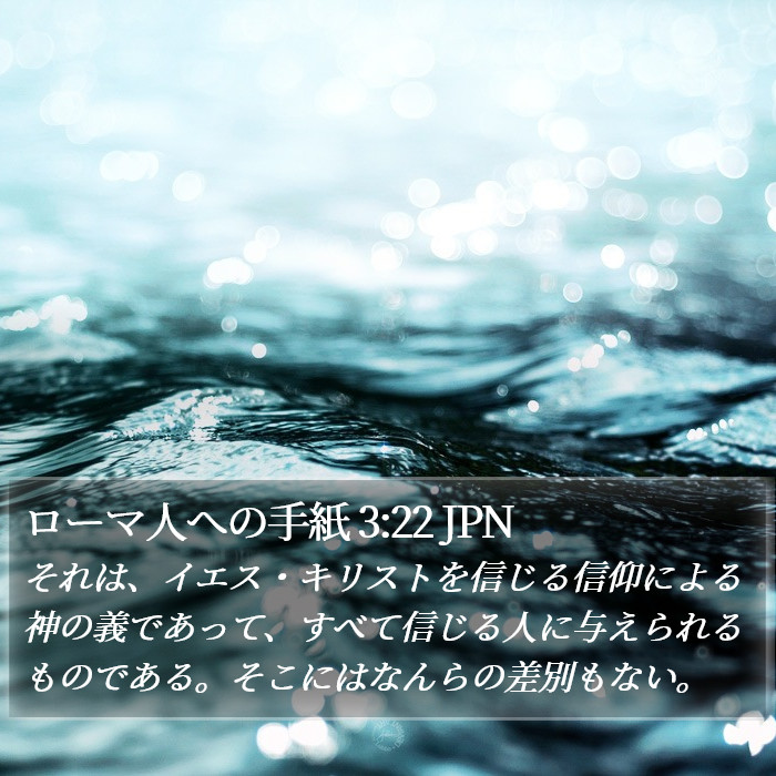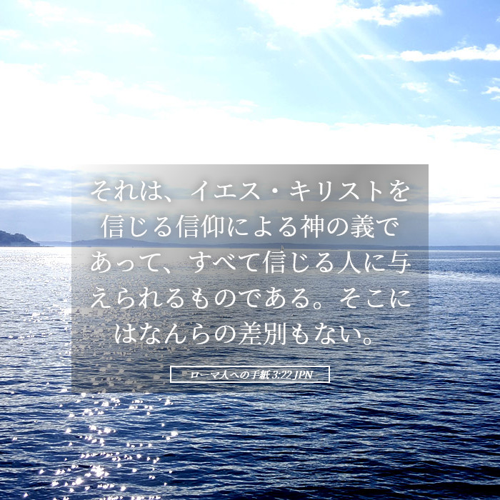 ローマ人への手紙 3:22 – 「すなわち、イエス・キリストを信じる信仰による、すべての信じる人に与えられる神の義です。そこには何の差別もありません。」