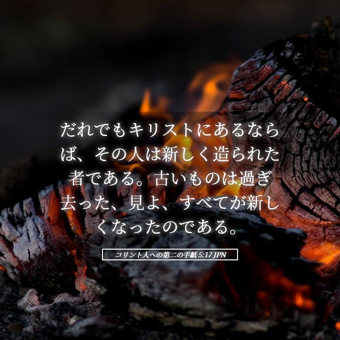 コリント人への第二の手紙 5:17 – 「だれでもキリストにあるなら、その人は新しく造られた者です。古いものは過ぎ去り、見よ、すべてが新しくなりました。」
