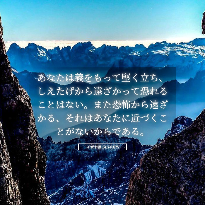 「あなたは義によって堅く立てられ、しえたげから遠く離れ、恐れることはない。恐怖もあなたに近づかない。」