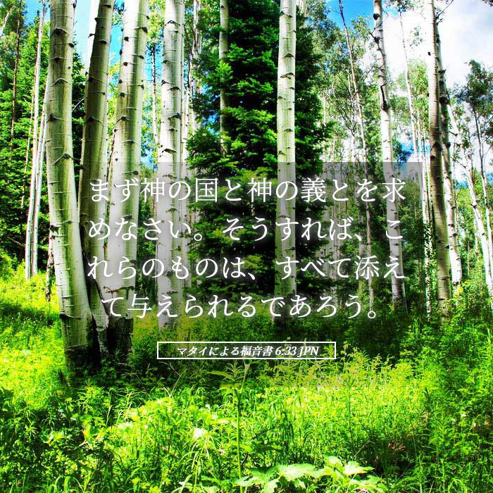 - マタイ 6:33 – まず神の国とその義を求めよ。そうすれば、必要なものはすべて加えられる。