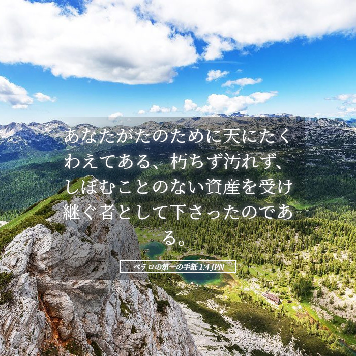 - ペテロ第一1:4 – 「朽ちることも、汚れることも、消えて行くこともない資産を受け継ぐように…」