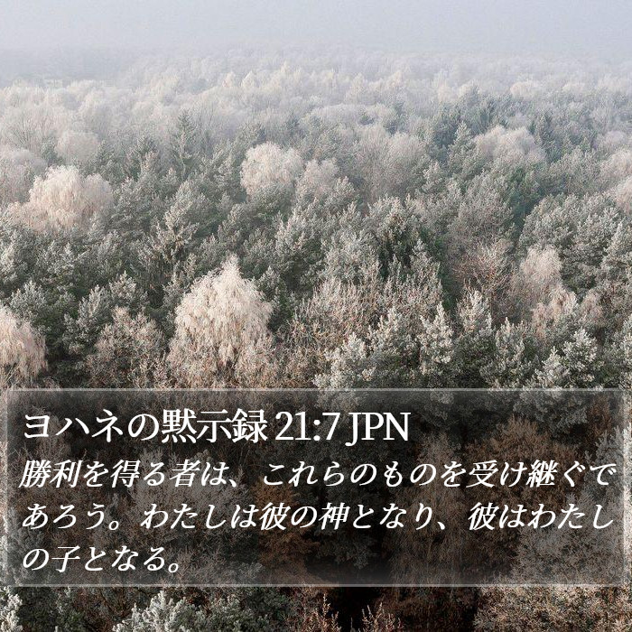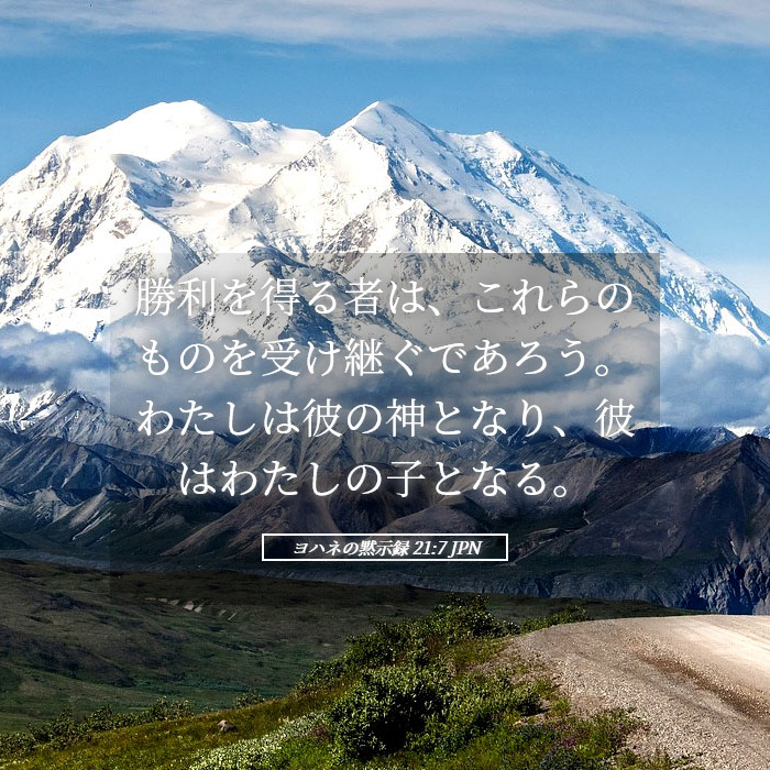 「勝利を得る者は、これらのものを受け継ぐであろう。わたしは彼の神となり、彼はわたしの子となる。」