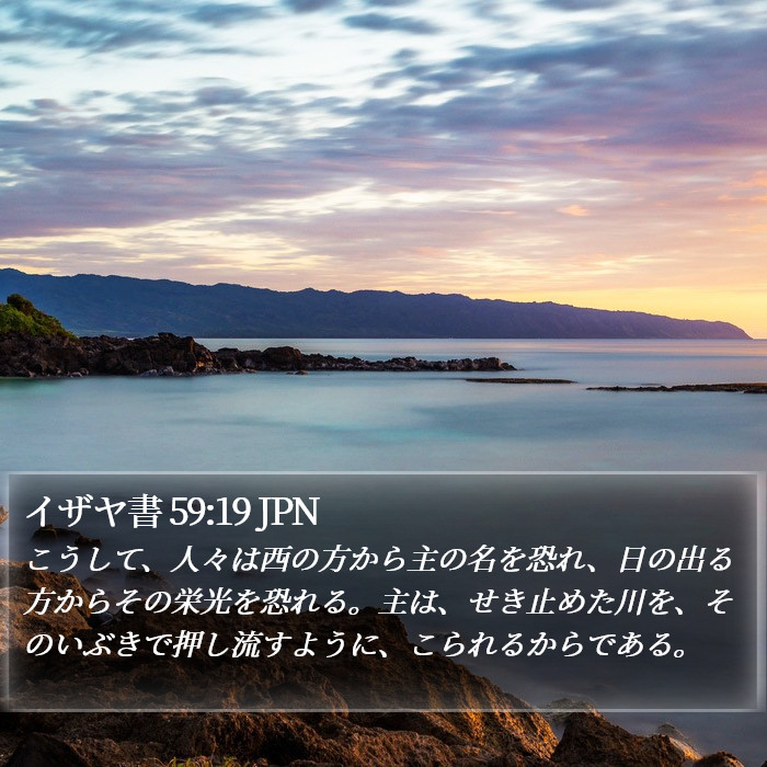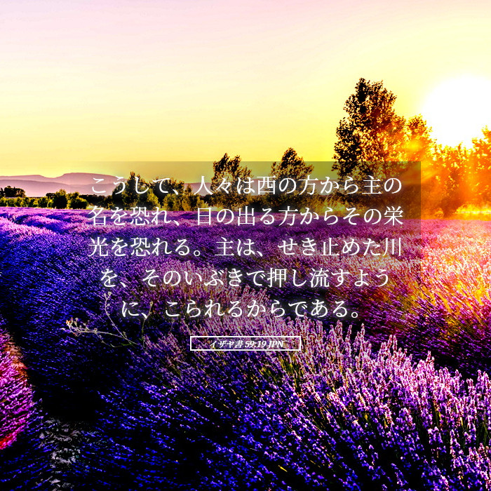 「それゆえ、西の方では主の御名を恐れ、日の上る方ではその栄光を恐れる。敵が川のように押し寄せるとき、主の霊がこれに対して旗をあげられる。」