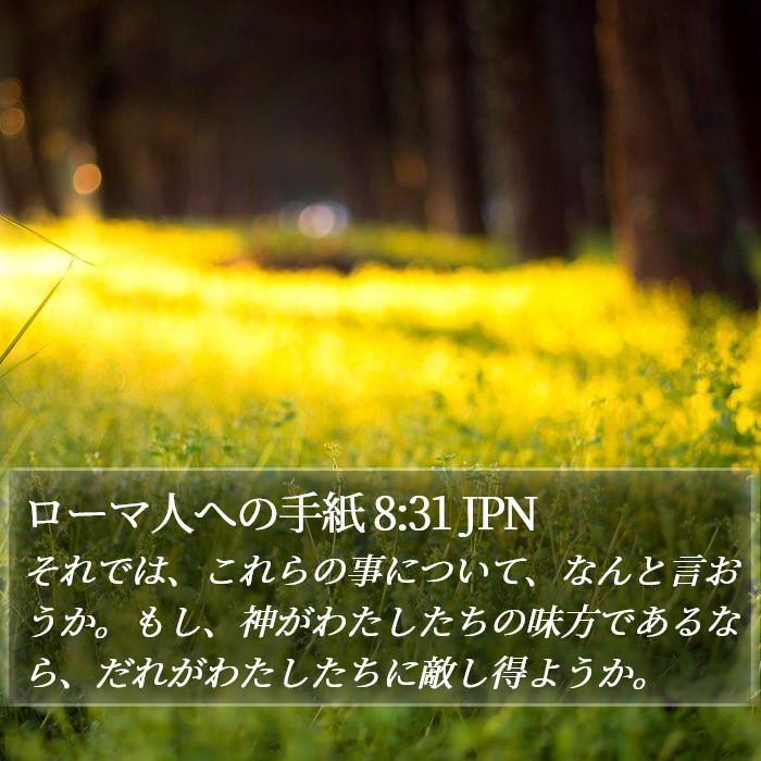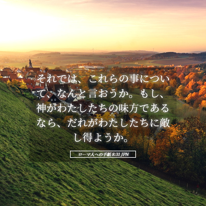 「では、これらのことについて、何と言いましょう。もし神が私たちの味方であるなら、だれが私たちに敵対できましょうか。」