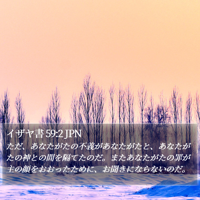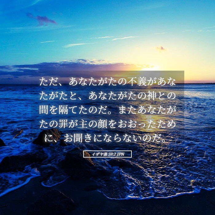2 ただ、あなたがたの咎が、あなたがたとあなたがたの神との間を隔て、あなたがたの罪が、御顔を隠させ、聞いてくださらないようにしたのだ。